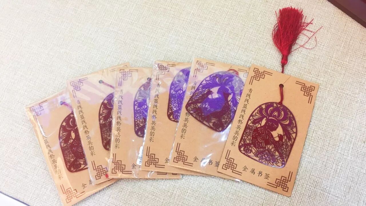 将陕北姑娘心灵手巧善于针线的生活景象、剪纸元素、耐用金属质感结合一身的 剪纸书签、团扇:
