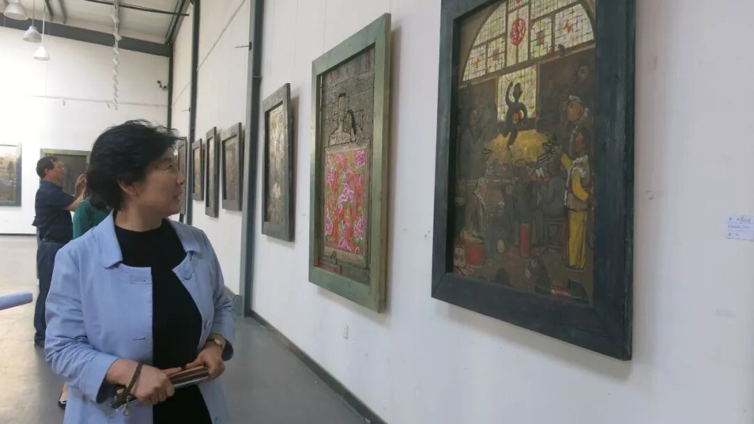 视察组参观朔方美术馆,视察委员对美术馆内浓缩的丰富多样的榆林文化形态非常感兴趣,赞许不断。